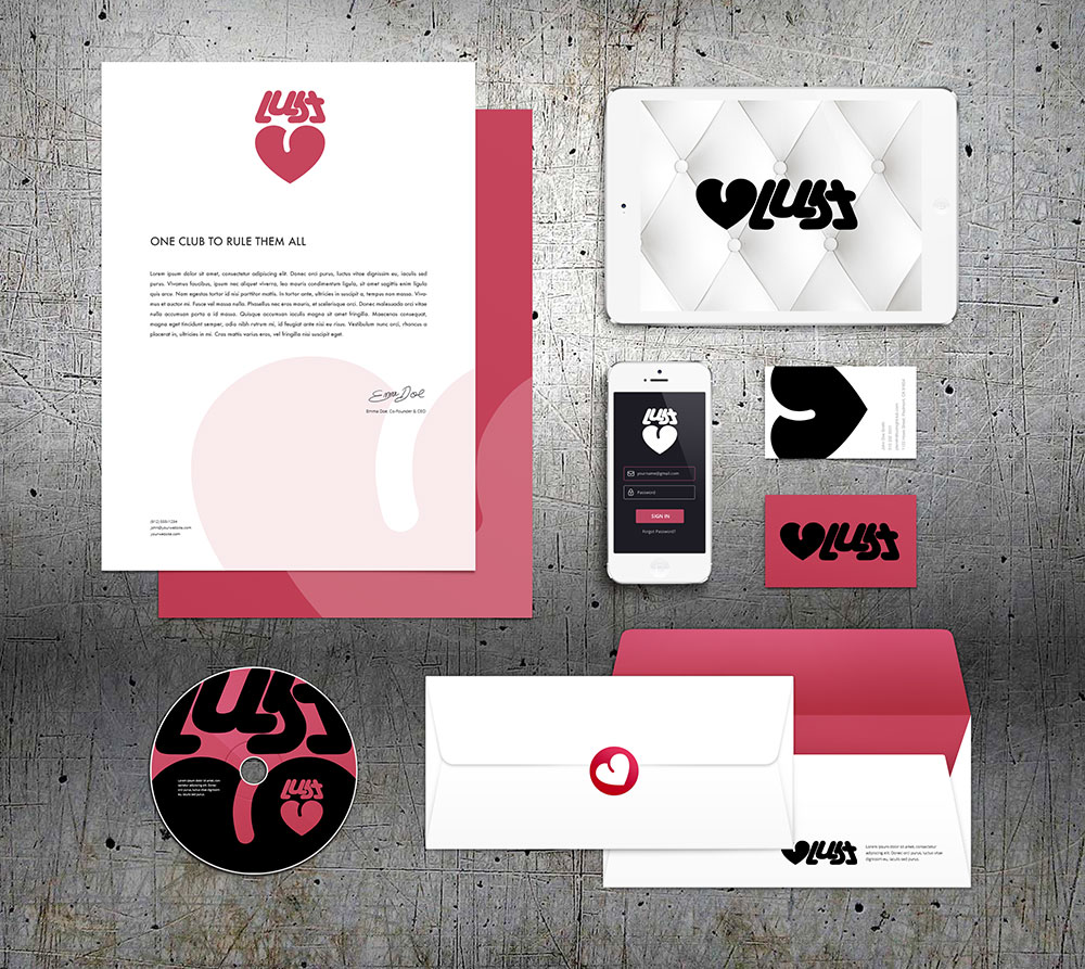 Lust wasn't your normal nightclub. It featured all-night faux gambling and catered to the after-hours San Francisco night-life scene. The solution to their brand identity featured a high-tech boudoir theme and a logo that was juicy and a little bit naughty.