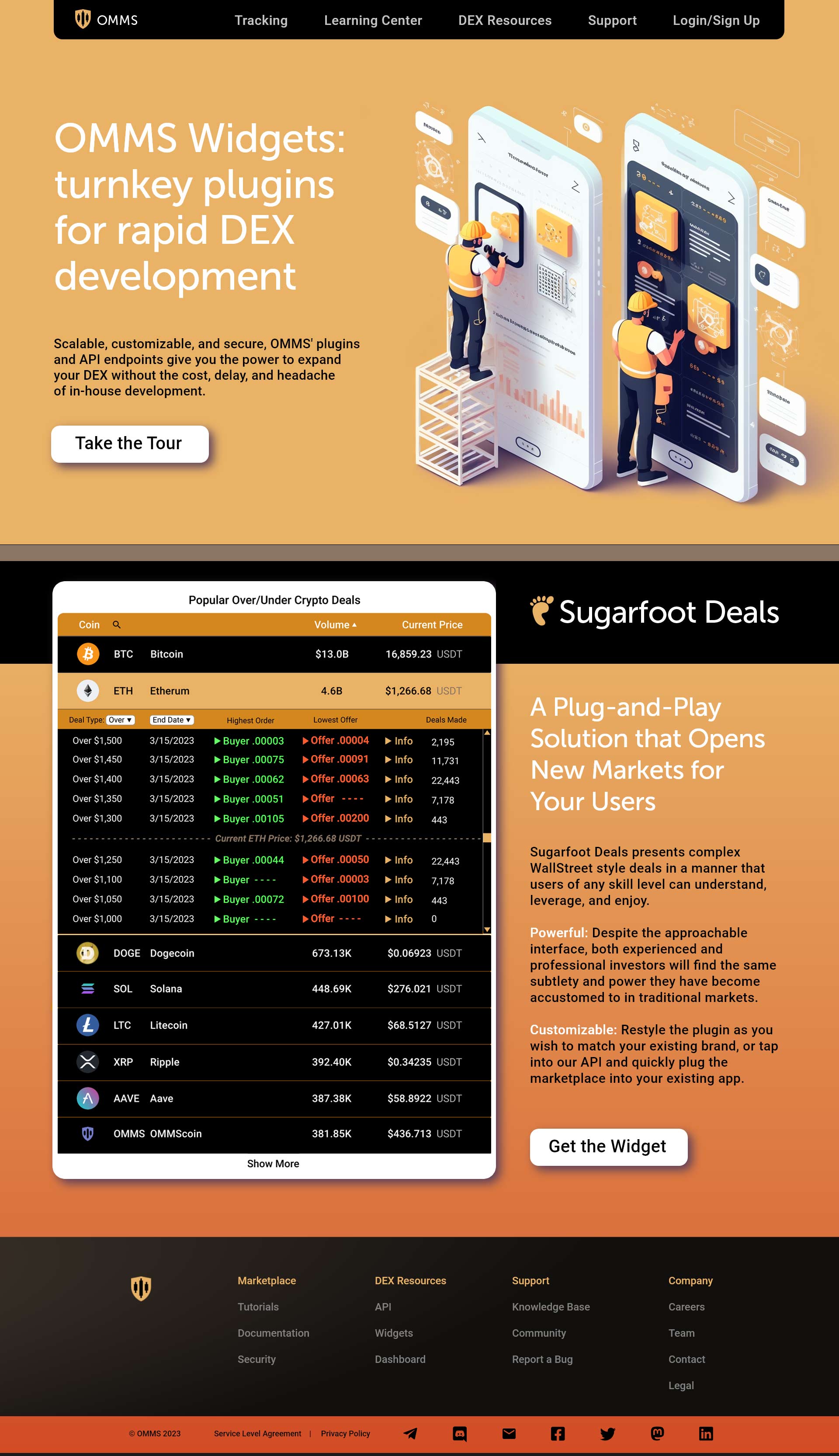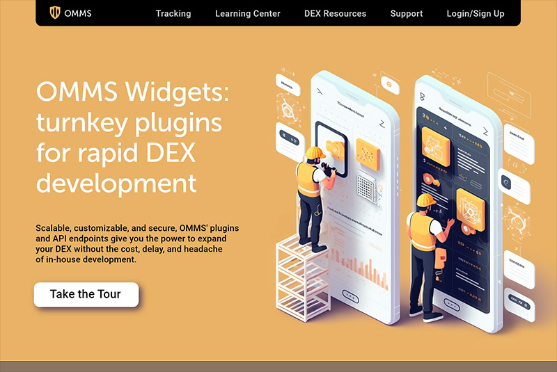 OMMS, a financial-tech startup working in the crypto space, provided turn-key widgets and plugins for decentralized crypto-currency exchanges (also known as DEXs). In addition to developing their corporate presence, I also designed and built their premier DEX offering.